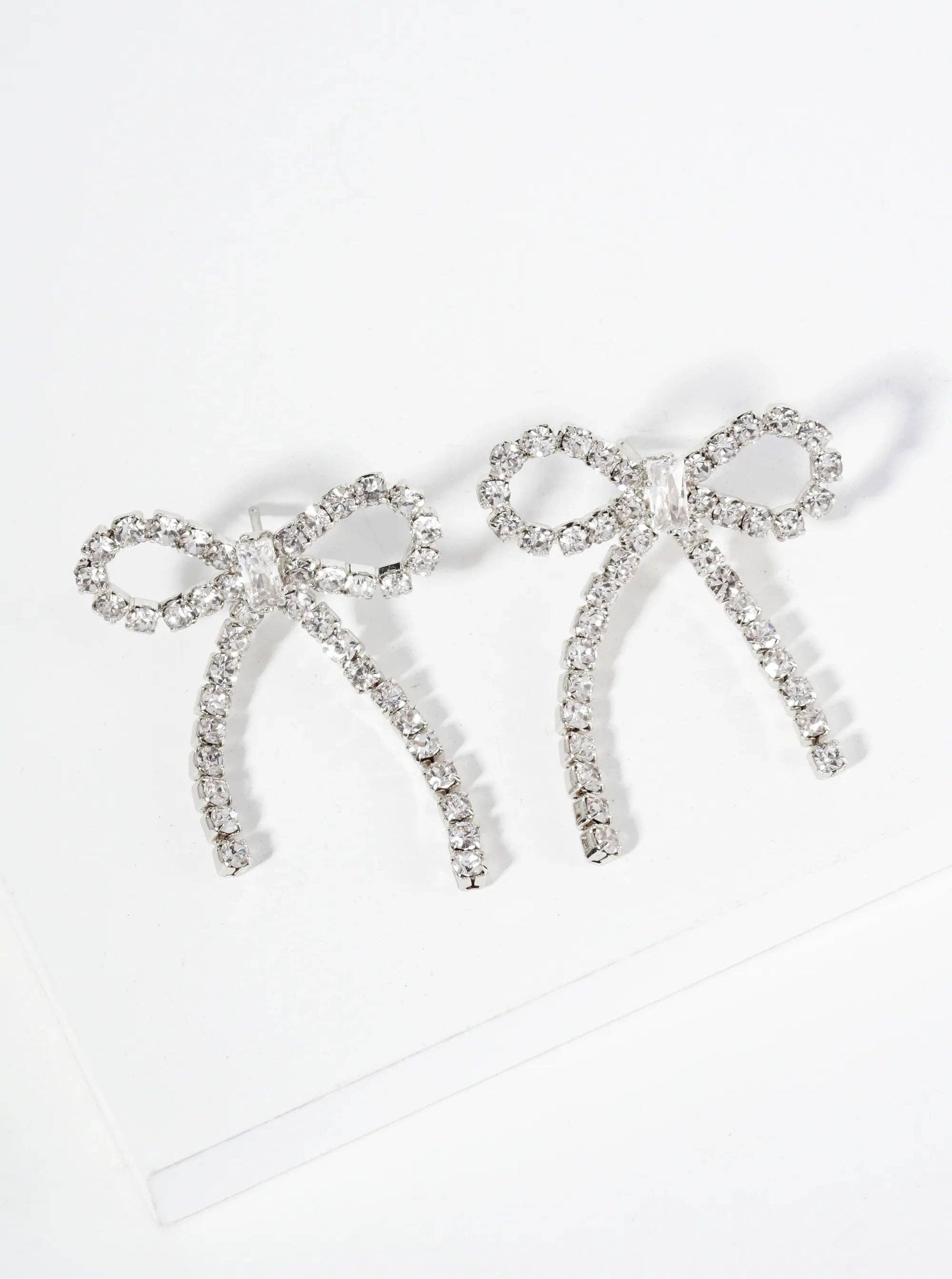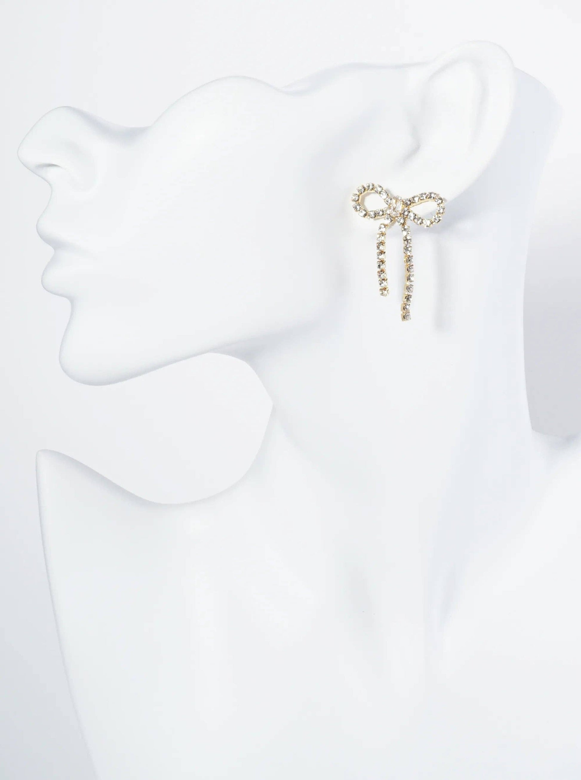 18K-Gold-Dipped Cubic-Zirconia Ribbon Bow Drop Post Earrings