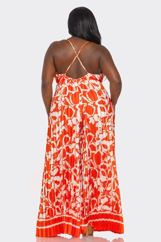 * super plus, ender print pleated jumpsuit, spaghetti straps, cross bare back. - Self: 100% Polyester Lining: 100% Polyester