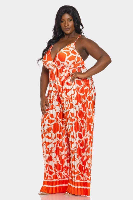 BCCJ71690 PLUS Suspender Print Pleated Jumpsuit