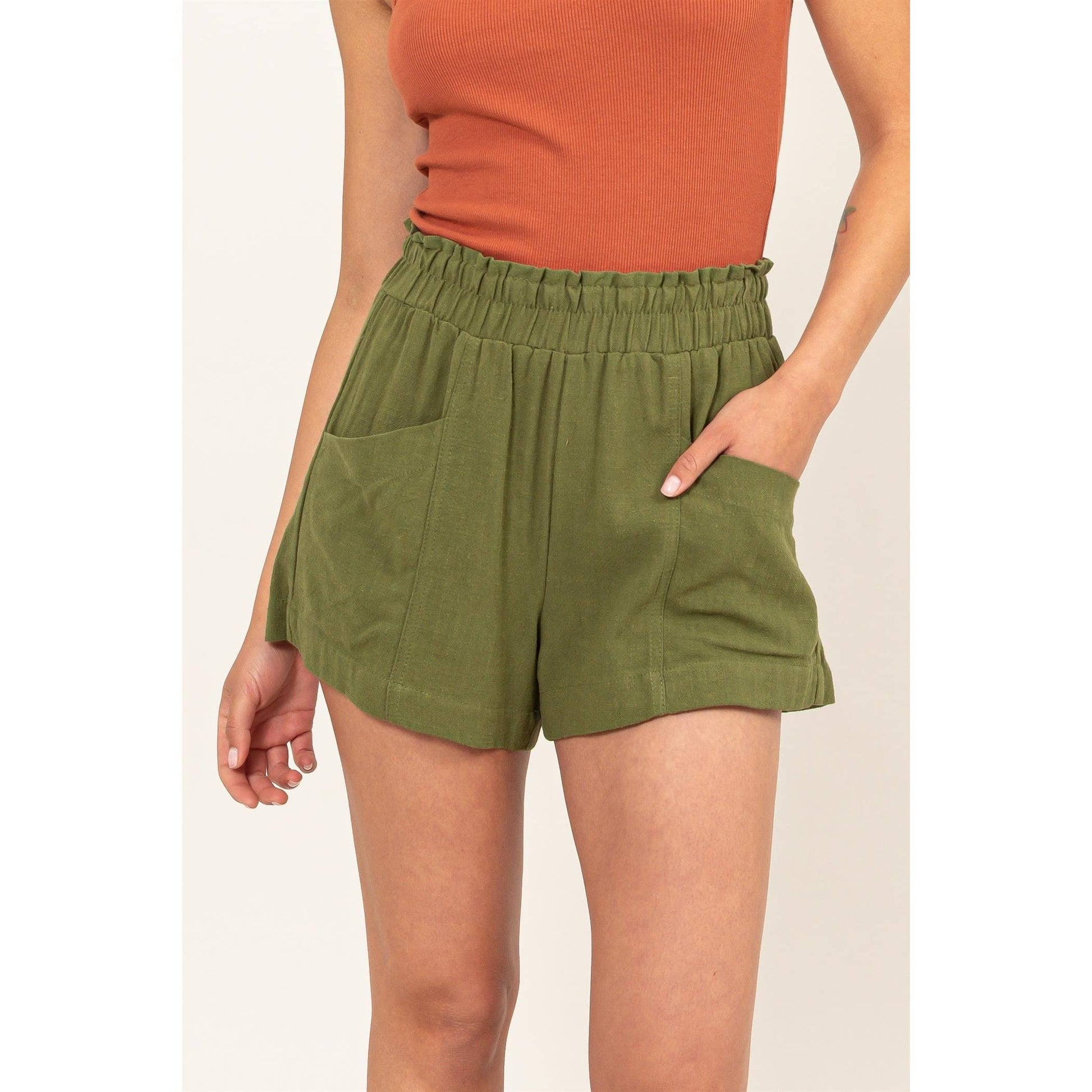 DZ24C377-D-ALL TIME FUN HIGH WAIST LINEN SHORTS