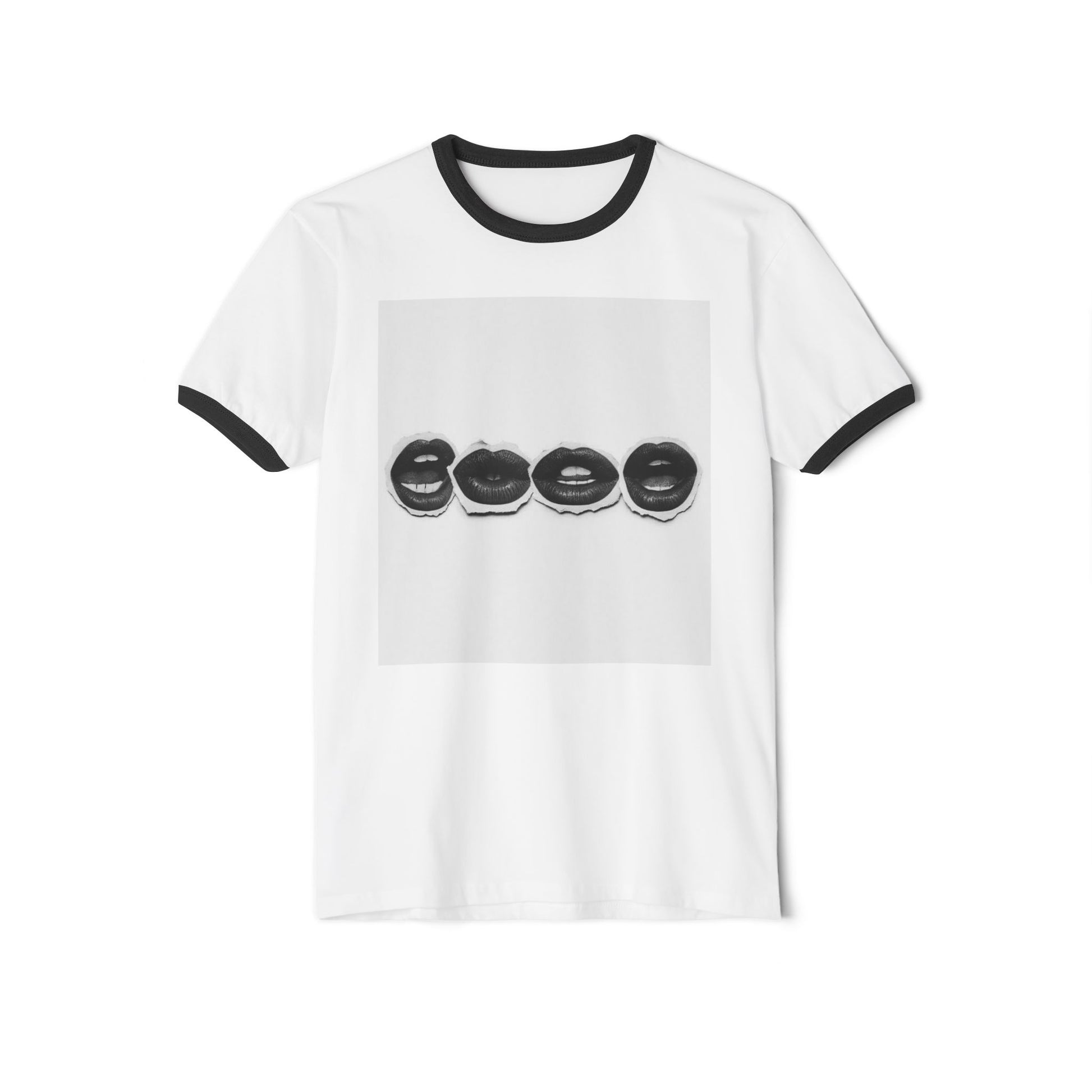 Retro Lips Ringer Tee — Monochrome Pop Art Lip Print