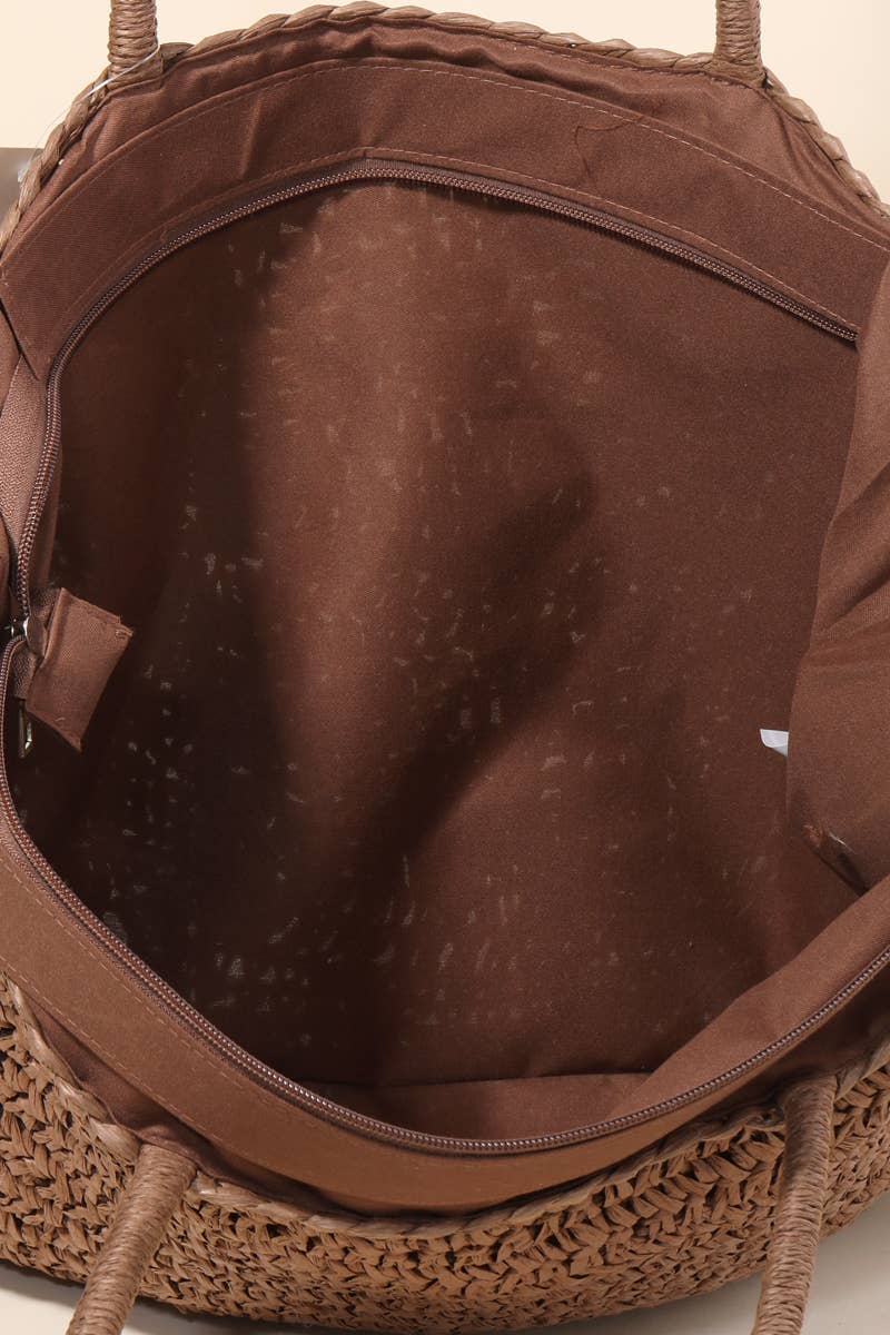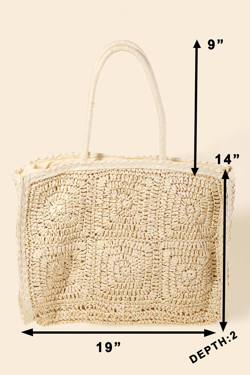 This piece is the perfect way to add some glamour to your look, this tote bag incorporates a remarkable straw braided rectangle tote bag design. The perfect way to complete any outfit, whether you're dressing up or keeping it casual. Available in BR, IV and TA. This item is sold in packs of 1. This tote bag approximately measures: Length: 14 Inches Width: 2 Inches Height: 19 Inches 70%PAPER 30%POLYESTER